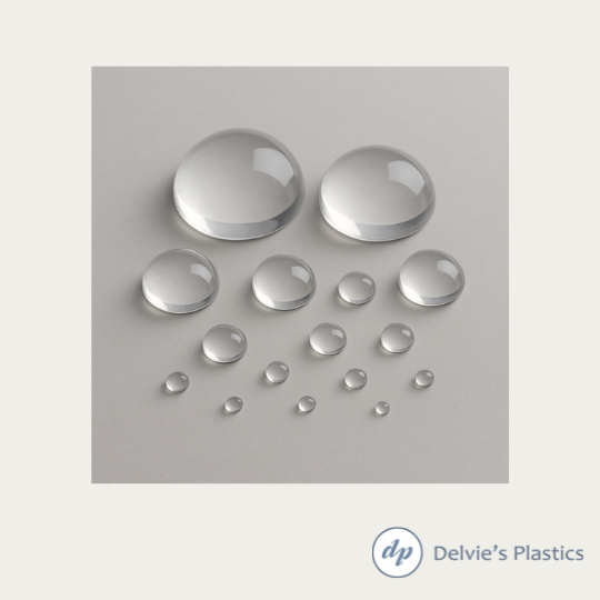 Elevate your display, project, or creative design with our Crystal Clear Acrylic Half Rounds, also known as cabochons. These flat-back domes are made from solid cast acrylic and are polished to a flawless, glass-like finish. Their curved shape and high optical clarity make them perfect for visual merchandising, signage, awards, art, or photography.
