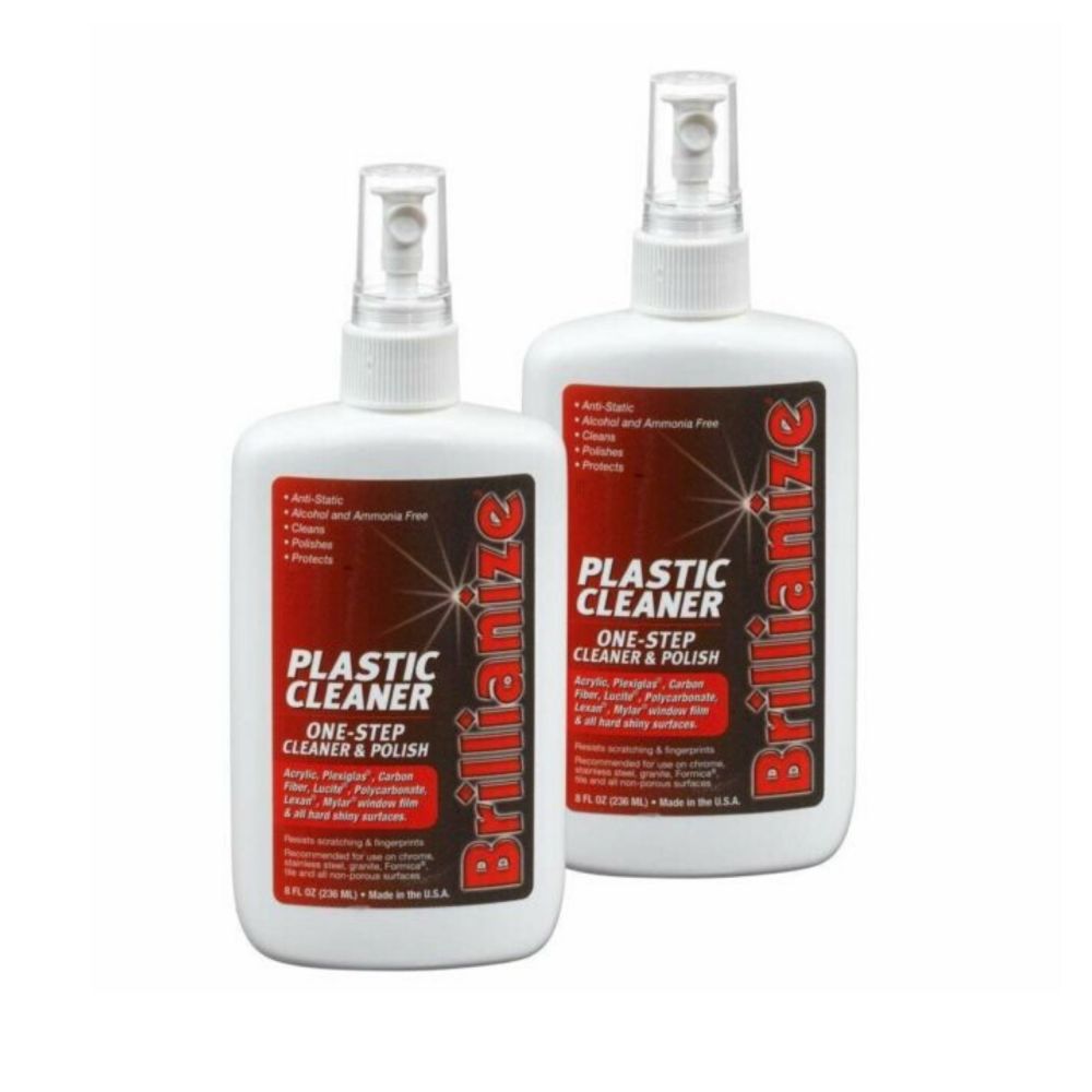 Brillianize plastic cleaner is a water thin, general purpose daily cleaner.  It is an excellent choice and is highly recommended for cleaning and polishing Plexiglass, Lexan, Acrylite, and Lucite.  Brillianize is for daily maintenence of your Plexiglass items.